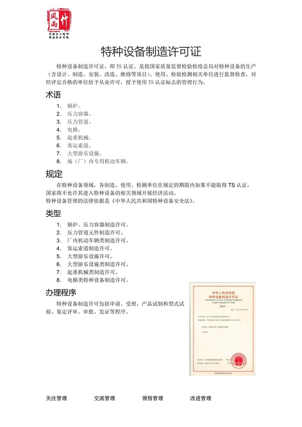 4. 特種設(shè)備制造、安裝、維修許可證