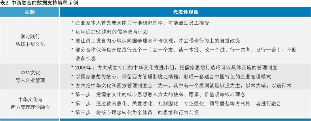 茅忠群的文化自信包括三個邏輯要素:學習并運用西方管理理論、發(fā)現(xiàn)西方管理理論的不足、學習中華文化并堅信中國企業(yè)管理更需要根植于中華文化之中,如表1所示。