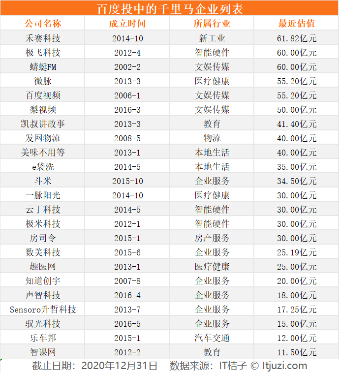 排名第三的是經(jīng)緯中國,截止 2020 年 12 月經(jīng)緯中國擁有 57 只千里馬,包括福佑卡車、蜻蜓 FM、閃送、銷售易等企業(yè)。