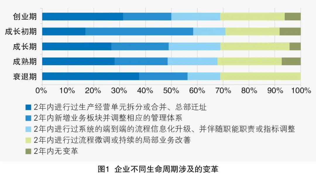 企業(yè)需要準(zhǔn)確判斷自身所處的發(fā)展階段,在不同生命周期匹配不同的變革內(nèi)容,以使得企業(yè)在進(jìn)入下一個(gè)發(fā)展階段前完成相應(yīng)的組織能力沉淀。