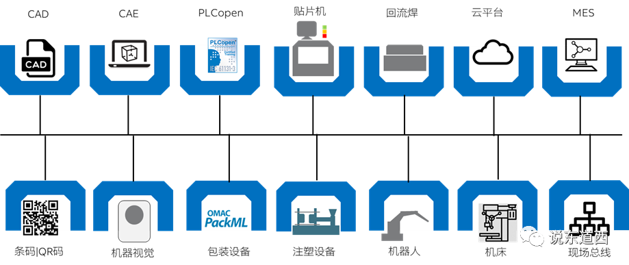 其實(shí),OPC UA核心是解決協(xié)作中的數(shù)據(jù)訪問(wèn)問(wèn)題,像一個(gè)手機(jī)工廠,包括了注塑、鈑金、電子、包裝、機(jī)器人、物流、視覺(jué)各種連接需求,而傳統(tǒng)在垂直行業(yè)的信息模型如Automation ML、PackML、EUROMAP、MTConnect、AutoID等都需要用統(tǒng)一框架來(lái)進(jìn)行實(shí)現(xiàn),否則,就又遇到大量的工程編程的接口連接問(wèn)題。