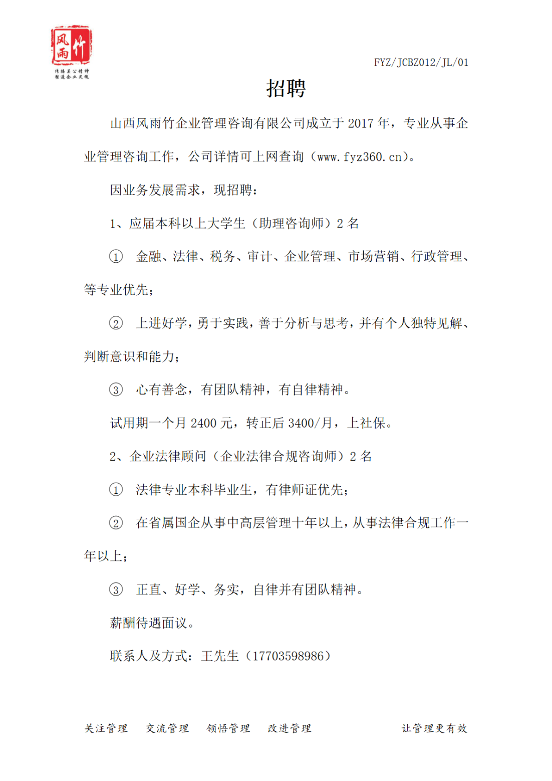 山西風(fēng)雨竹企業(yè)管理咨詢有限公司