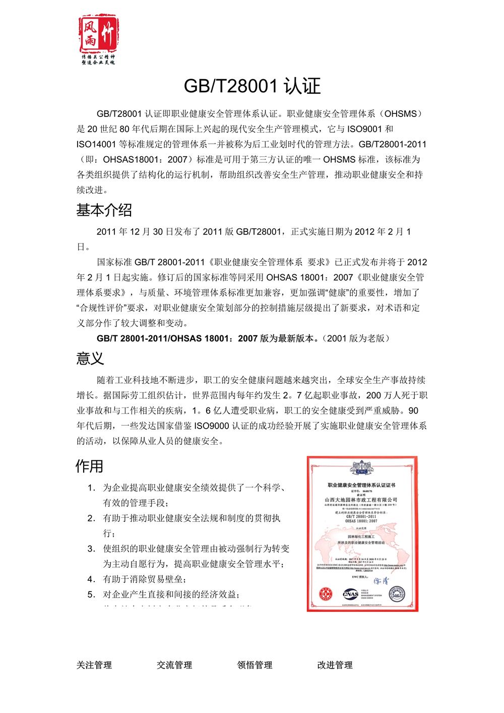 3.GB/T28001認(rèn)證(職業(yè)健康安全管理體系認(rèn)證)