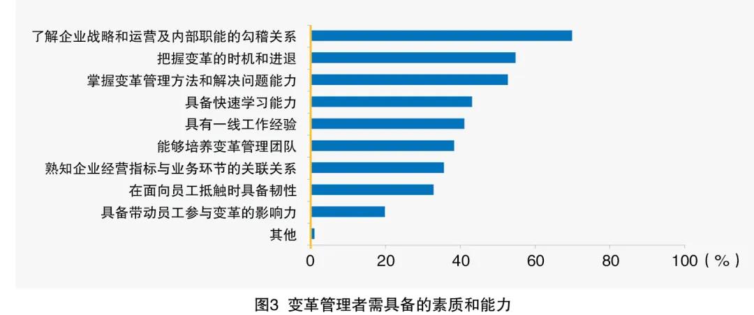 調(diào)研報(bào)告顯示,具備較強(qiáng)影響力、善于帶團(tuán)隊(duì)和運(yùn)用變革管理方法的變革推進(jìn)者是企業(yè)變革成功的關(guān)鍵。變革推進(jìn)者需要持續(xù)打造變革管理能力,支持高層并協(xié)同戰(zhàn)略管理人員打造和傳播變革愿景,通過變革帶動業(yè)務(wù)運(yùn)營績效提升,并基于已有的變革成果擴(kuò)大影響力,再借助影響力向高層爭取相關(guān)資源支持。