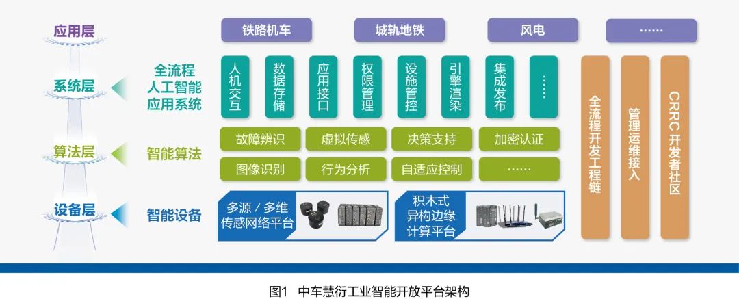 針對(duì)上述軌道交通、風(fēng)電領(lǐng)域裝備健康管理存在問題,中車研究院歷經(jīng)7年,構(gòu)建包括設(shè)備層、算法層、系統(tǒng)層、應(yīng)用層的云、邊、端協(xié)同的中車慧衍工業(yè)智能開放平臺(tái)(如圖1所示),幫助用戶企業(yè)提升裝備健康管理水平。